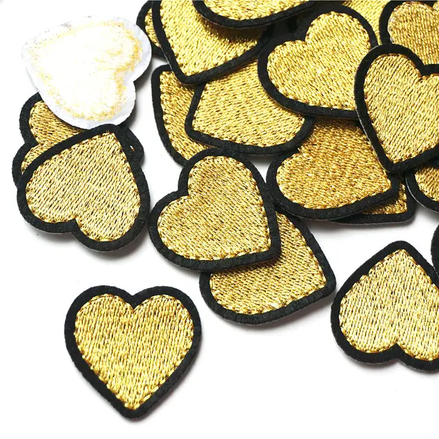 Buy 10PCS Gold Hearts Black Edge Fabric Embroidery Sew Iron On Patches Badges For Clothes Appliques Craft Decoration Sticker Online