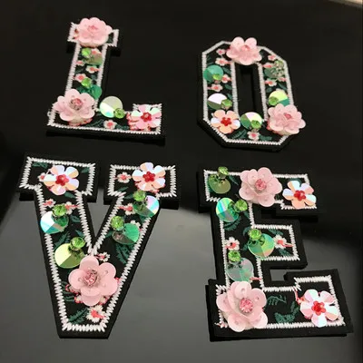 Buy Letters Love Handmade Rhinestone beaded Patches for Clothing Sew Sequins Iron Patch Applique Embroidery Patch for Hats Bags Online