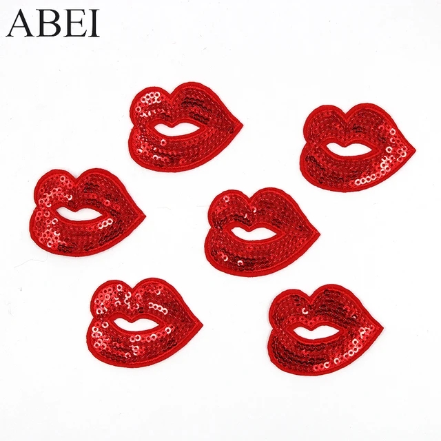 Large Sequin Lip Patch Iron-On for Clothing – Embroidery Applique
