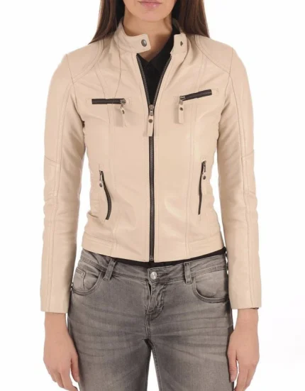 Paradise Off-White Leather Biker Jacket