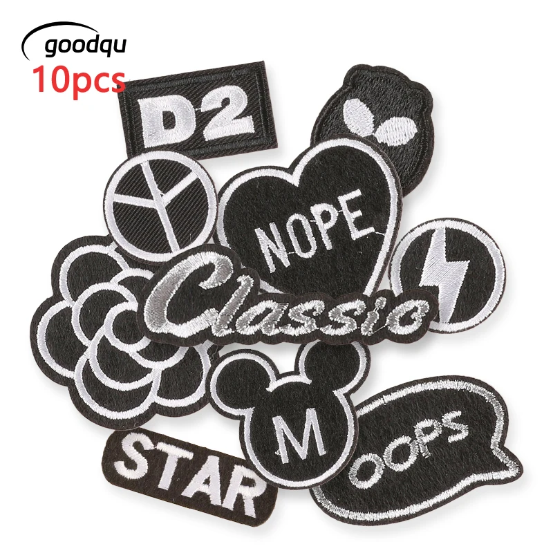 10 Pcs Black & White Letter Patches | Iron-On Embroidered Patches for DIY Clothing Repairs and Customization