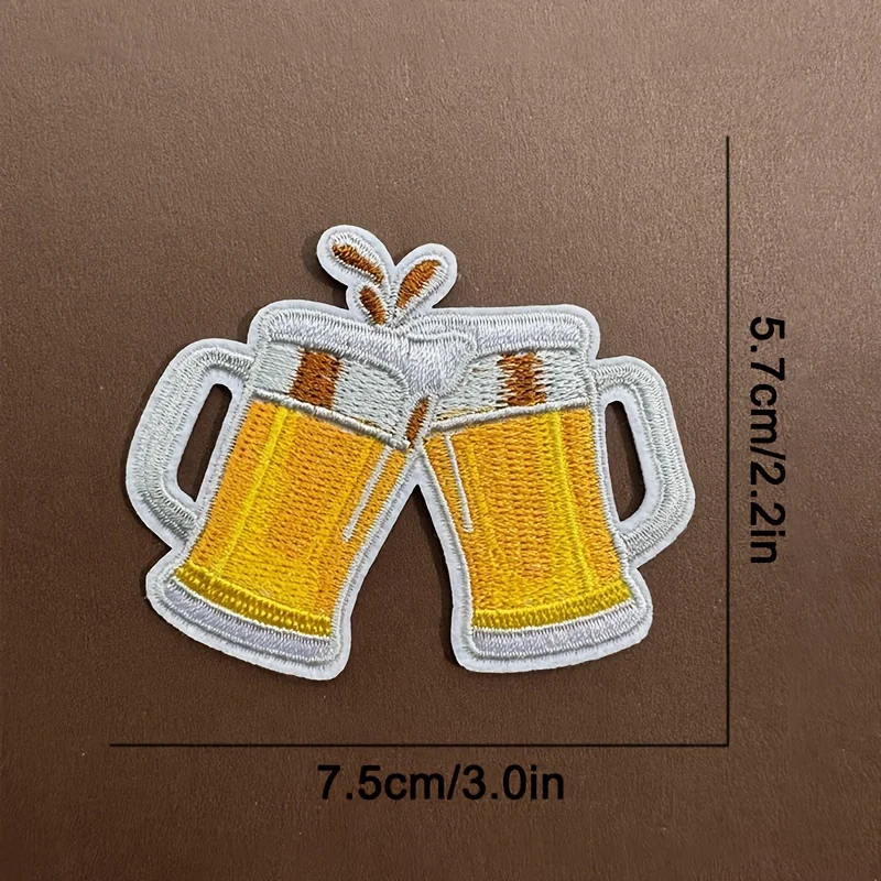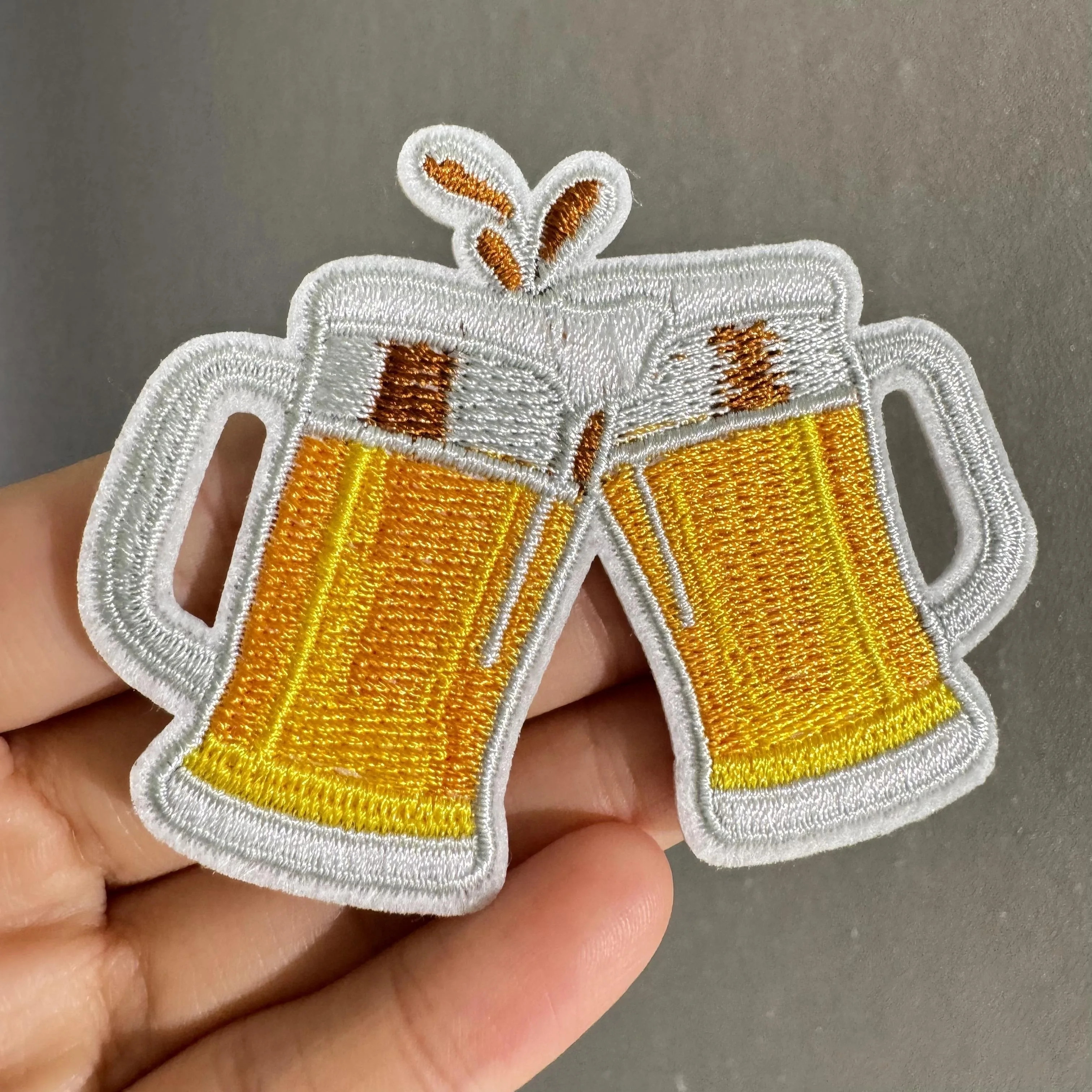 1PC Embroidered Beer Mug Patch – Fun Cartoon Iron-On Appliqué for DIY Clothing, Jeans, Jackets & Bags Accessories
