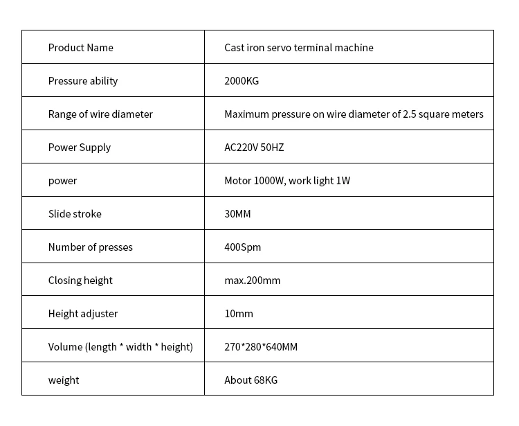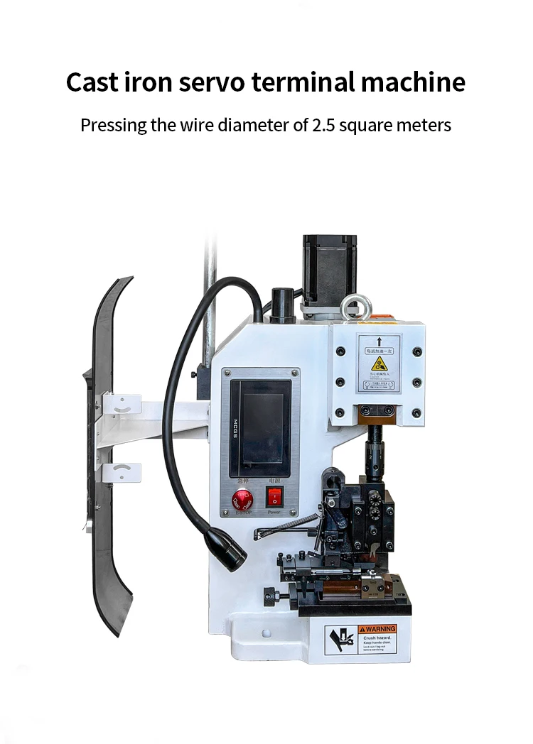 The Automatic Wire Servo Terminal Machine is engineered for high-precision wire terminal crimping, utilizing a robust enameled cast iron frame and a servo motor drive system. This machine is designed to ensure consistent and reliable crimping performance, making it suitable for various industrial applications.