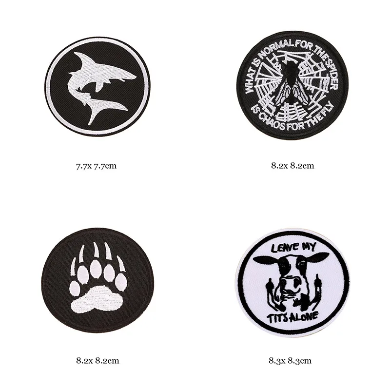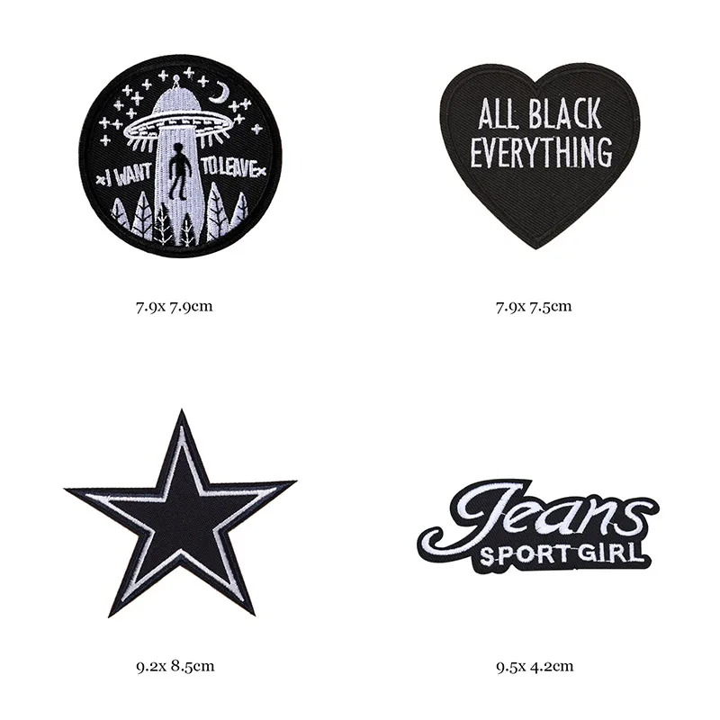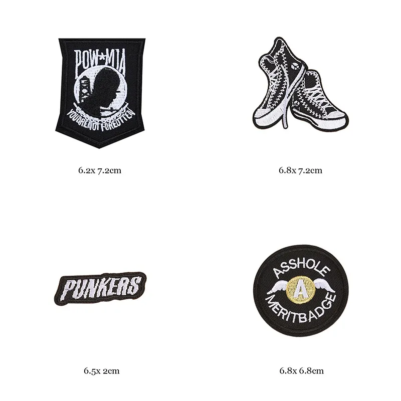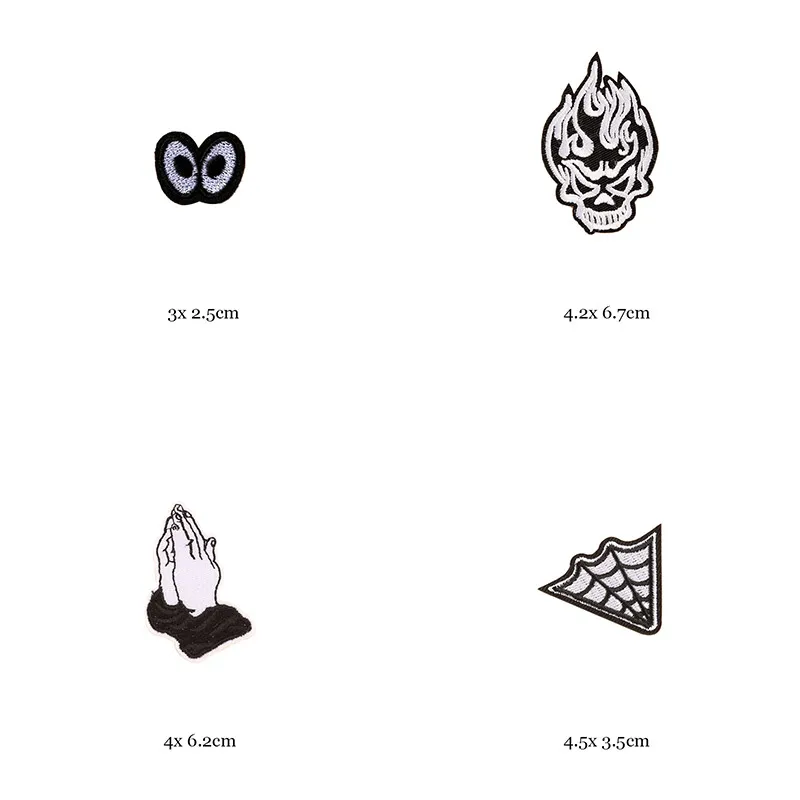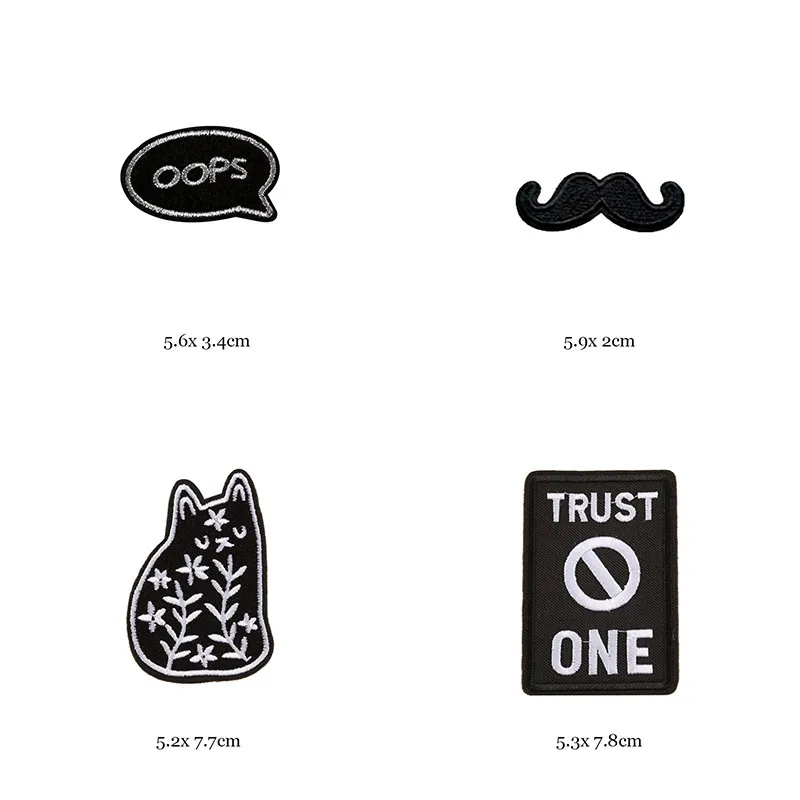 Welcome to our online store, where you can explore and shop from our extensive collection of 46 styles of black and white iron-on patches for clothes. Our patches are the perfect way to add a touch of personalization and style to your garments. With a variety of designs including letter appliques, skulls, stripes, embroidery stickers, and round badges, you’ll find the perfect patches to enhance your wardrobe and make a fashion statement.