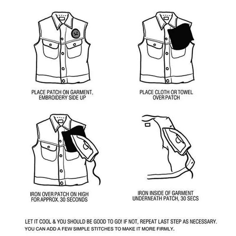 Applying our iron-on patches is quick and easy. Simply place the patch on the desired area of your garment, cover it with a thin cloth, and apply heat using an iron. The adhesive backing on the patches activates with the heat, ensuring a secure and long-lasting attachment to your clothes. No sewing is required, making it a hassle-free way to customize your wardrobe.