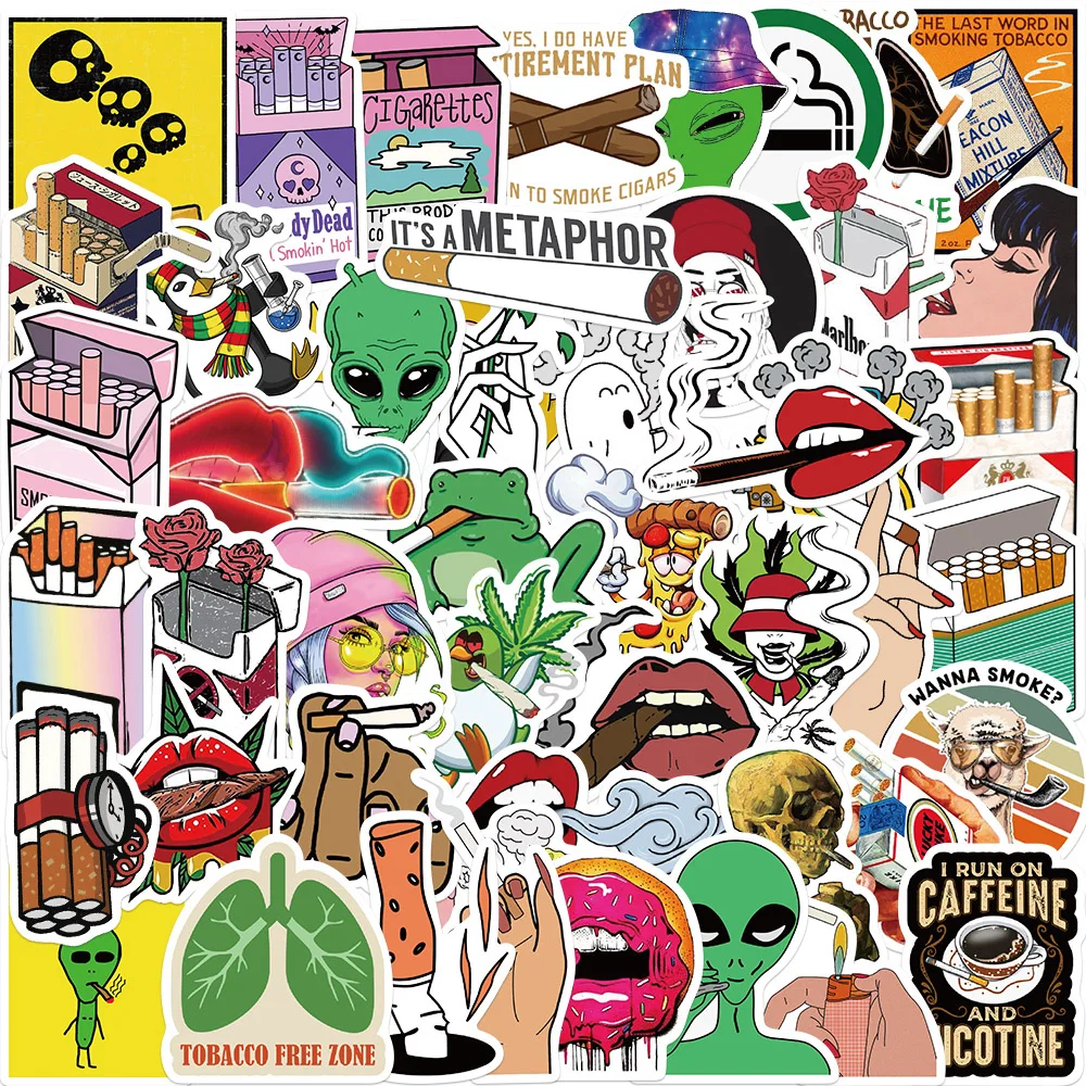 Each sticker in the set features funny characters indulging in weed smoking, adding a playful and rebellious element to your items. The designs range from cute and cartoonish to edgy and bold, allowing you to choose the stickers that best match your style and personality. Whether you want to decorate your car, motorcycle, phone, or any other surface, these stickers are sure to catch attention and spark conversations.