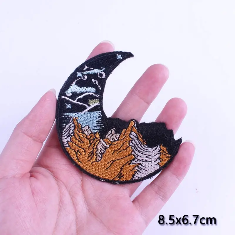 DIY Adventure Travel Patches For Clothing Mountain Camping Badge Space Stripe Iron On Patches On Clothes UFO Embroidery Patch