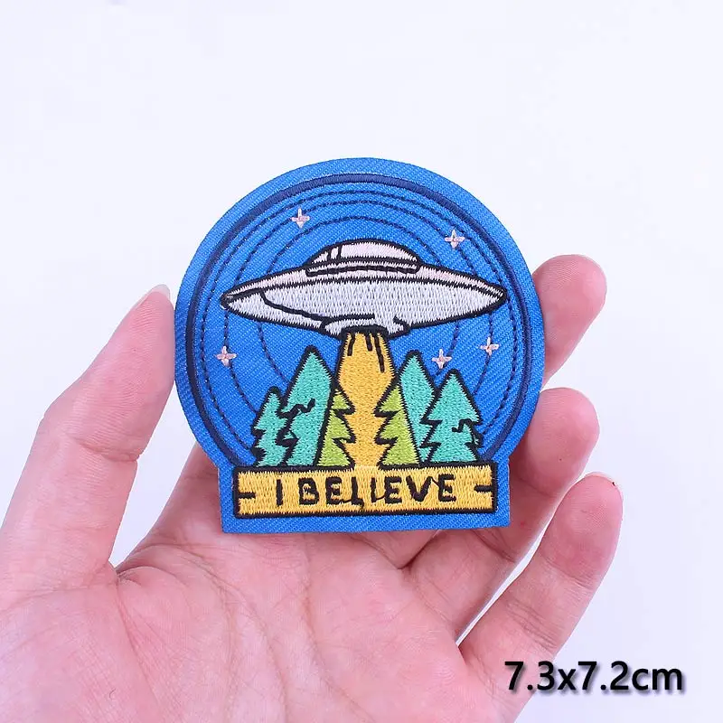 1 review for Buy Adventure Travel Patches For Clothing Mountain Camping Badge Space Stripe Iron On Patches On Clothes UFO Embroidery Patch Online
