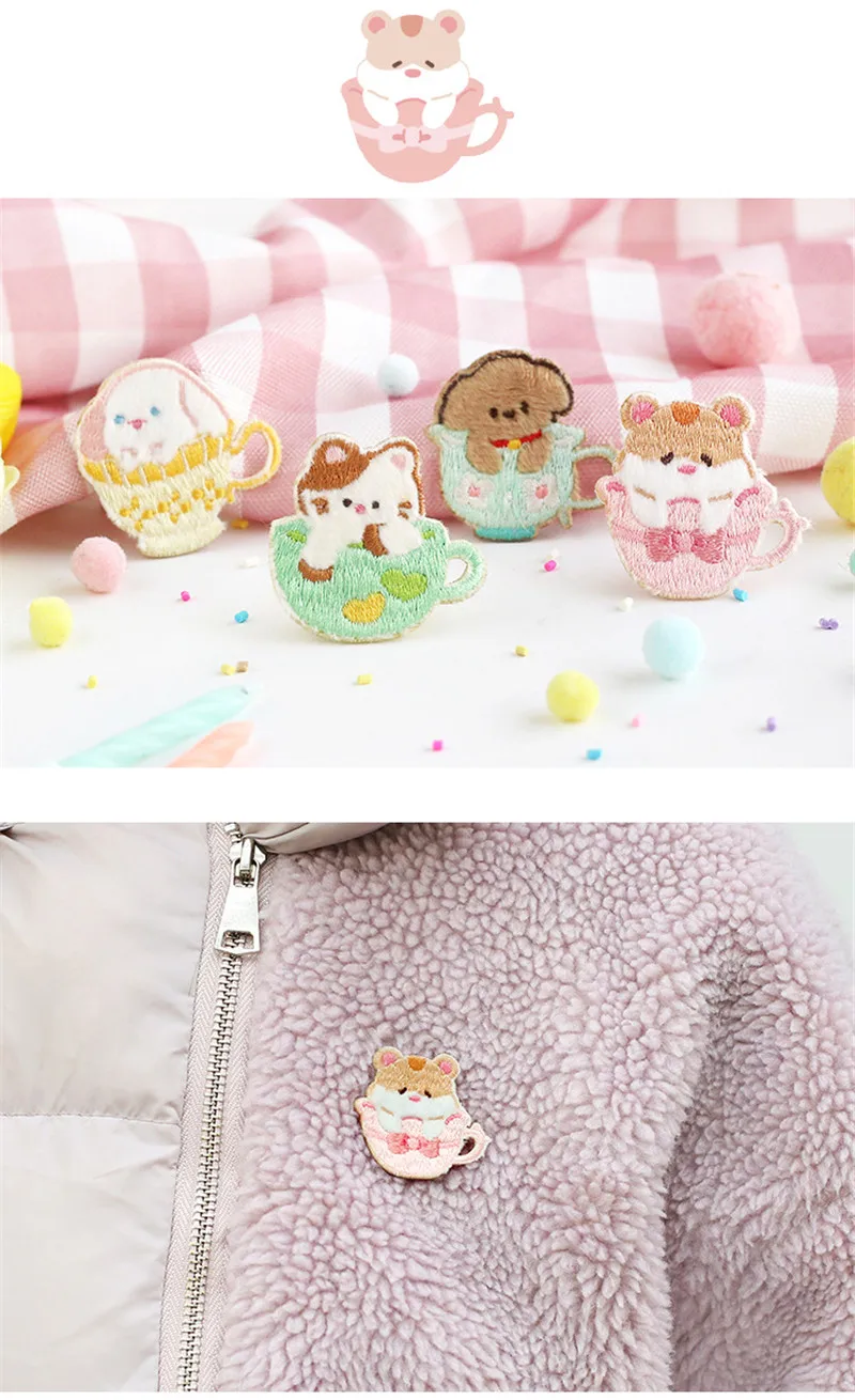 Buy AHYONNIEX Cute Cup Cat Embroidery Patches for Bag Jeans Dog Teddy Rabbit Hamster Iron On Patches for Clothes Small Patches Online