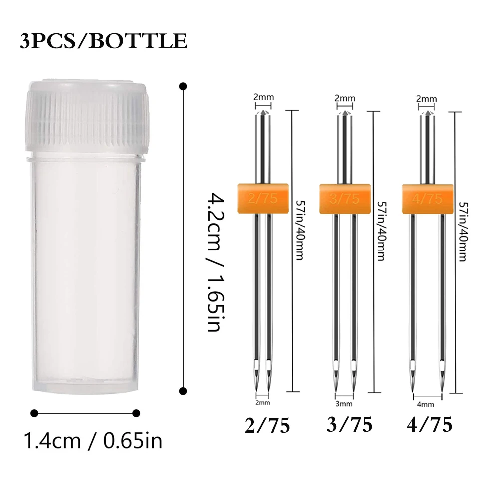 Versatile Needle Sizes: The set includes three sizes of twin stretch needles (3/75, 3/80, and 3/90), allowing you to tackle a wide range of fabrics and sewing projects with ease.