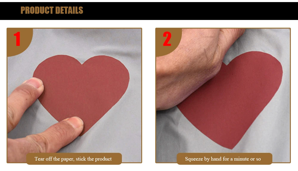 With their self-adhesive backing, applying these patches is a breeze. Simply clean and dry the area around the hole or tear, peel off the backing of the patch, and firmly press it onto the damaged area. The strong adhesive ensures a secure bond, keeping the patch in place even during various activities. Say goodbye to sewing needles and glue tubes and welcome the ease and efficiency of our QJH No-Sew Oxford Self-Adhesive Hole Repair Patches Stickers.