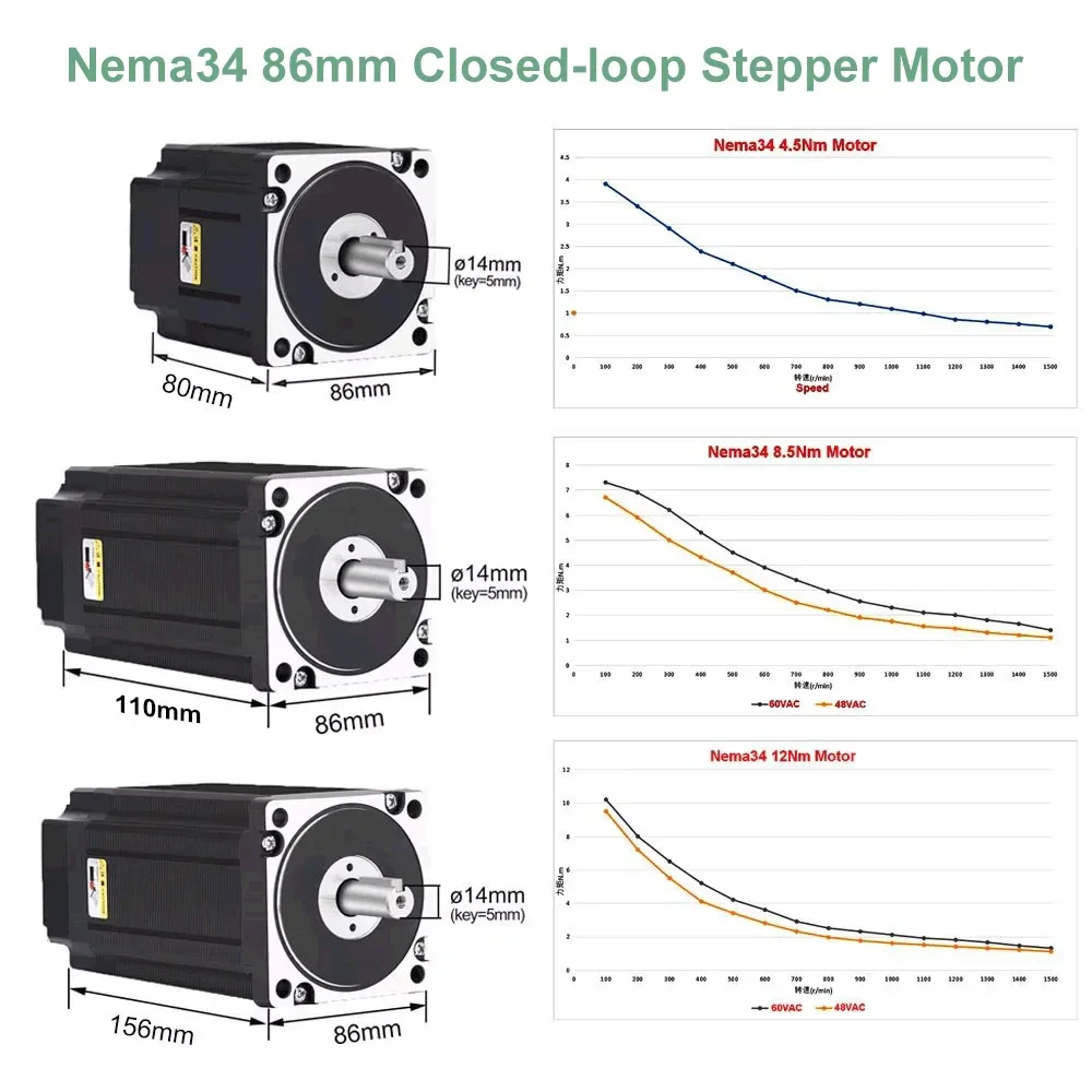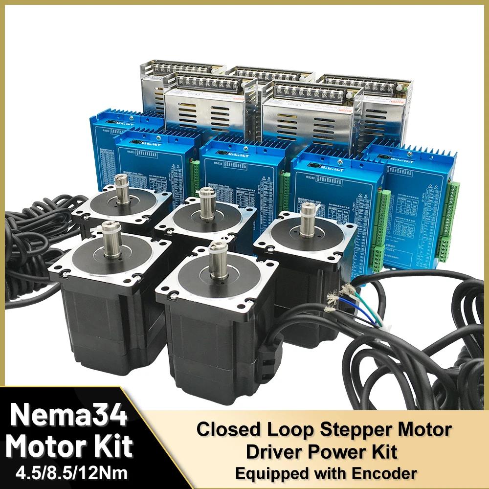 Powerful Nema34 Closed Loop Stepper Motor Kit with driver, encoder, and 400W power supply for precision motion control in CNC routers, milling machines, and industrial automation systems.