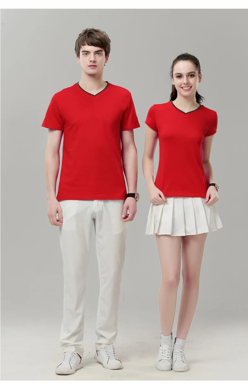 Custom Logo V-Neck T-Shirt for Men & Women | High-Quality Embroidery & Print | 10 Colors, Sizes S-4XL