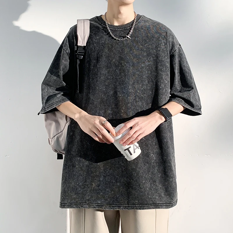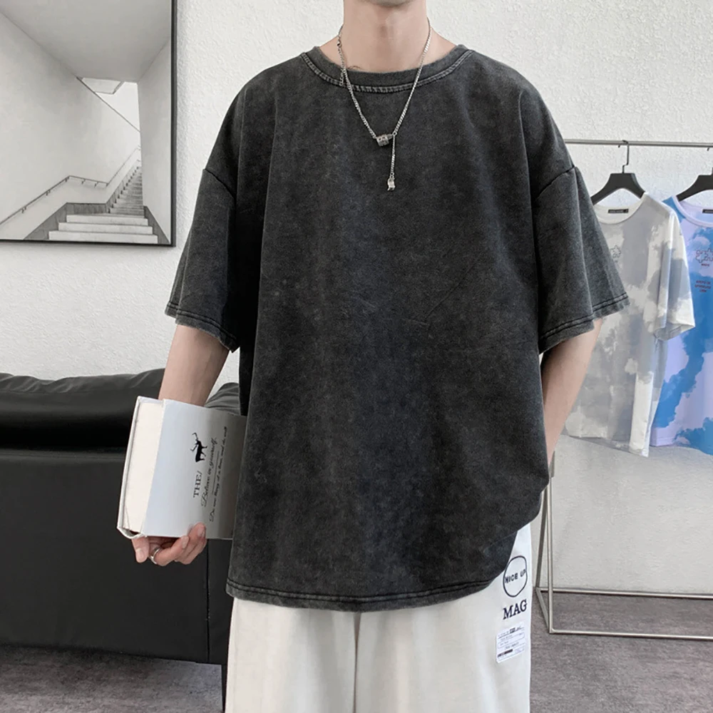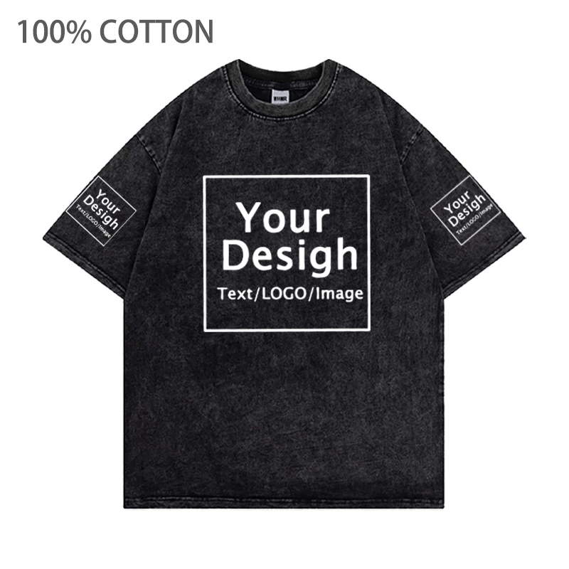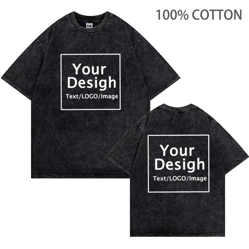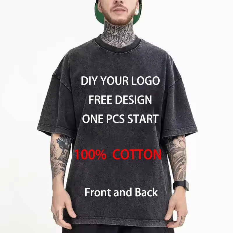 Create your own Custom Hip Hop Streetwear T-Shirt for men. Made from 100% cotton with a retro washed finish, this oversized tee offers comfort and style. Personalize it with your logo or design for a unique, trendy summer look.