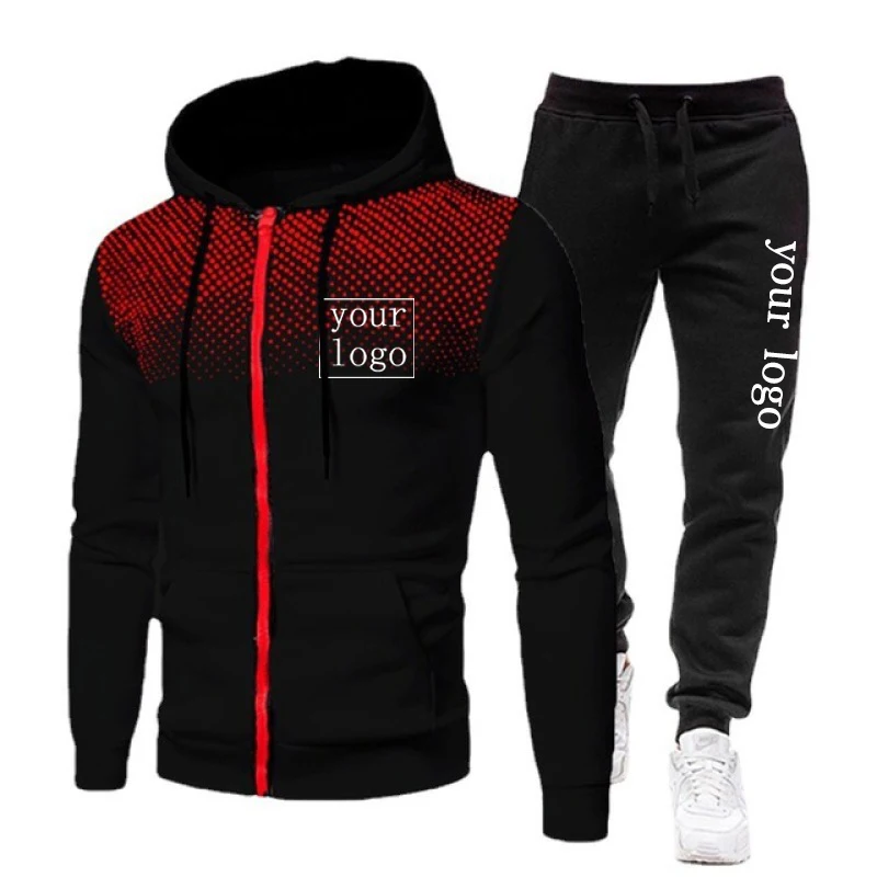 Design your own Custom Logo 2-Piece Men’s Polka Dot Hoodie & Pants Set, perfect for outdoor activities and casual wear. This comfortable sportswear set includes a zip-up hoodie and matching pants, ideal for jogging or casual outings. Personalize it with your logo for a unique, stylish look.