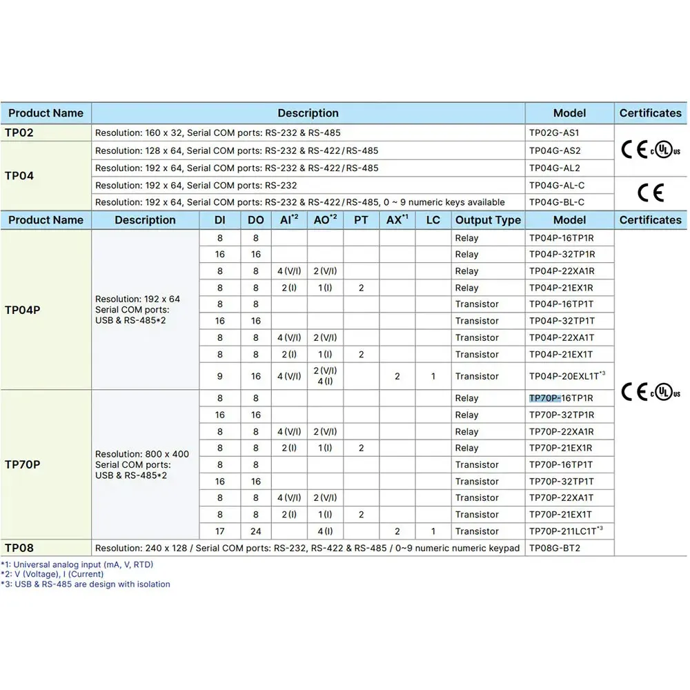 • Models supported: TP04P-16TP1R, TP04P-32TP1R, TP70P-16TP1R, TP70P-32TP1R, TP70P-22XA1R