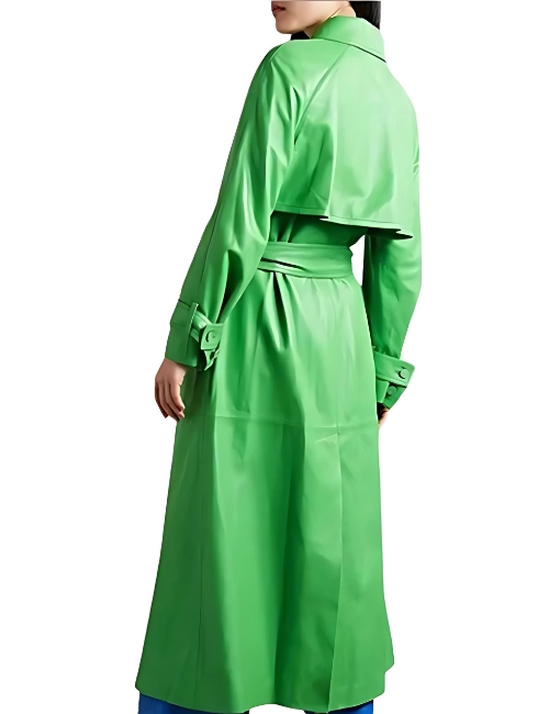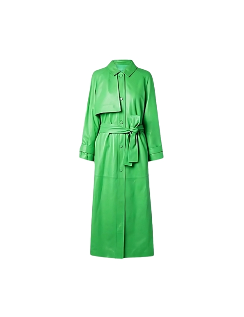 Green Long Leather Coat