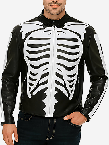 Halloween Special Skeleton Bones Faux Leather Jacket
