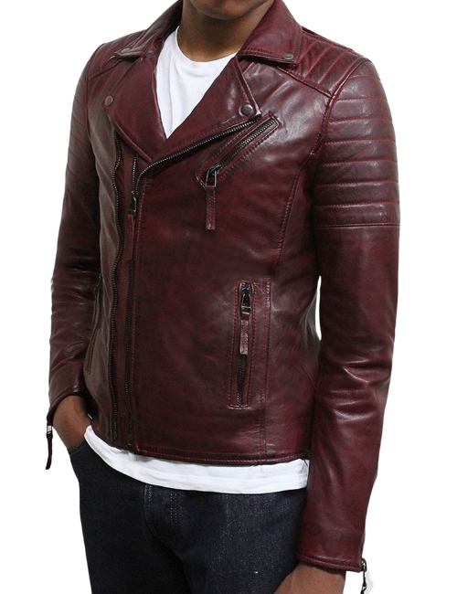 The Burgundy Biker Jacket for Men combines rich color, durable leather, and a modern, street-ready design