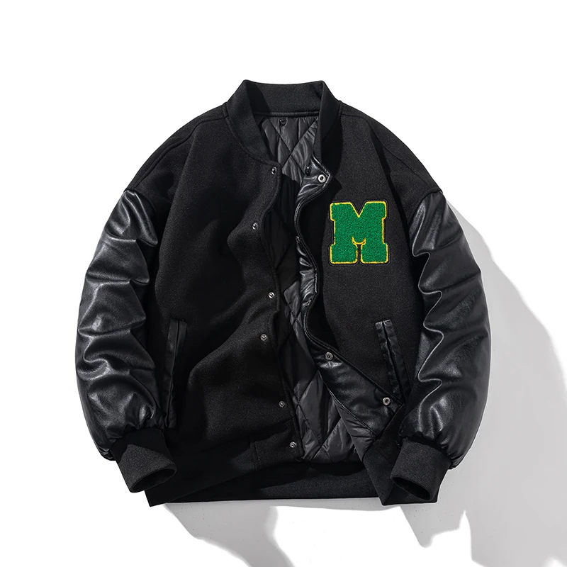 Men’s Varsity Jacket | Winter Fashion Baseball Jacket with Leather Sleeves | Stylish Button-Up College Parka for Women