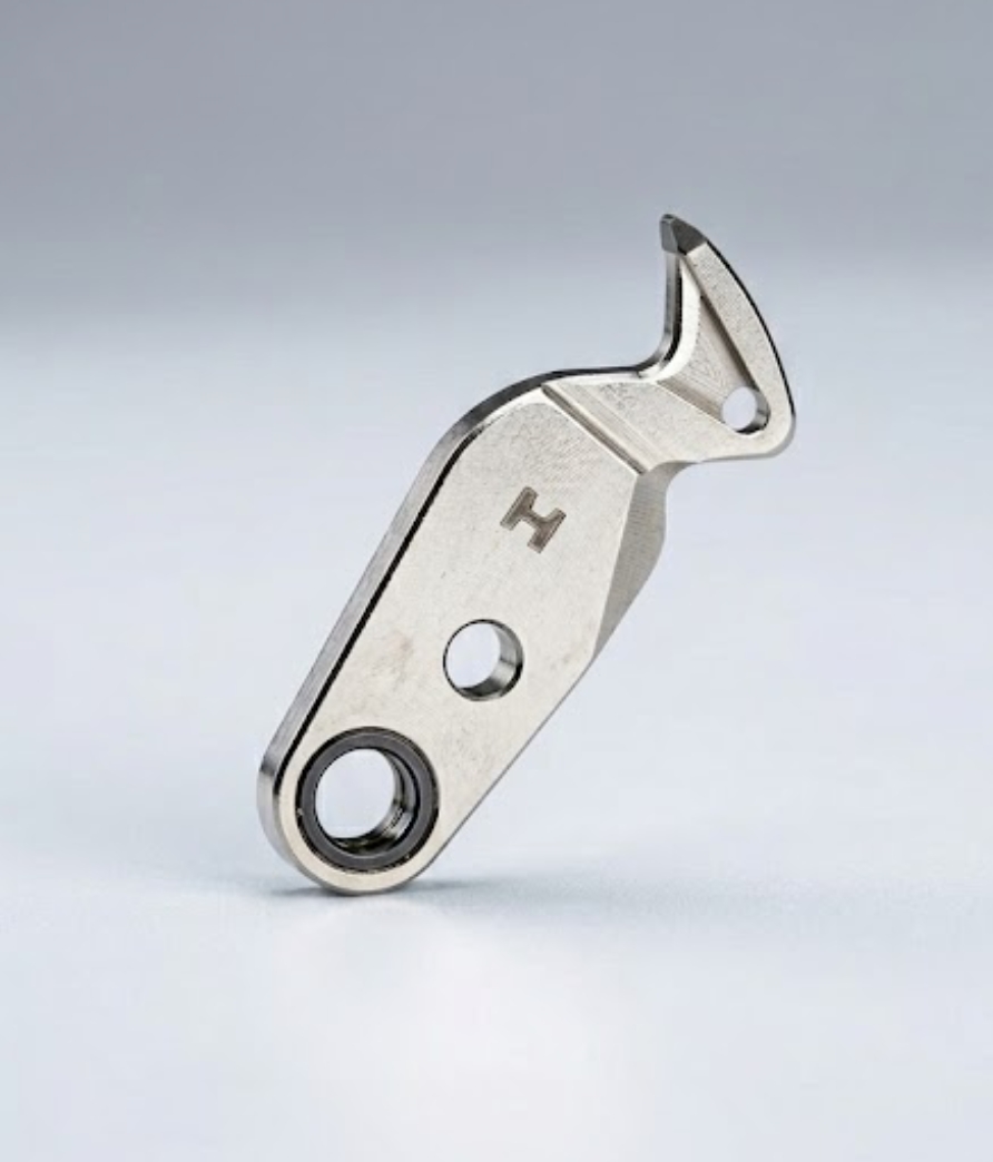This movable knife is used in embroidery machines to trim threads efficiently during operation, ensuring neat and professional embroidery output across various fabric types.