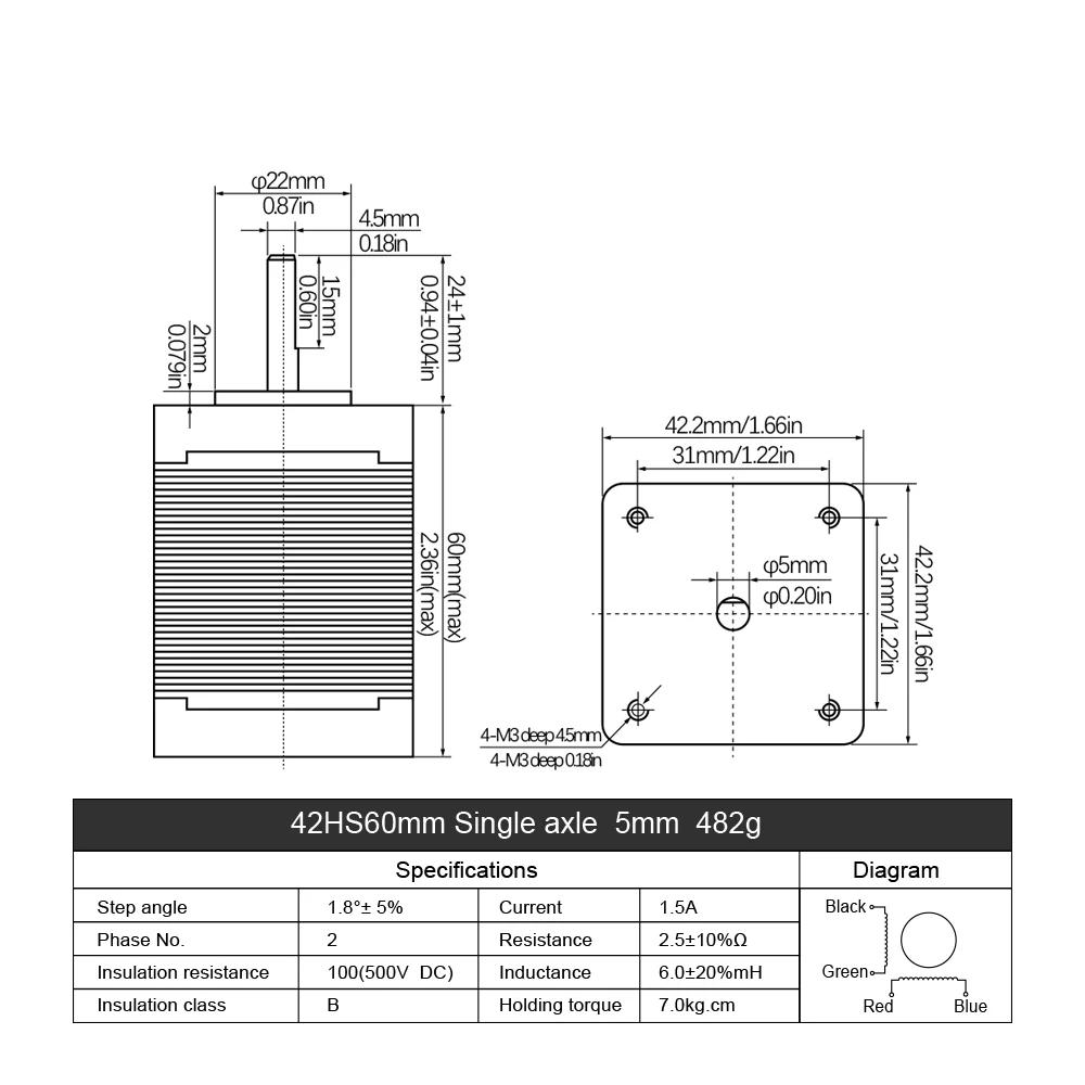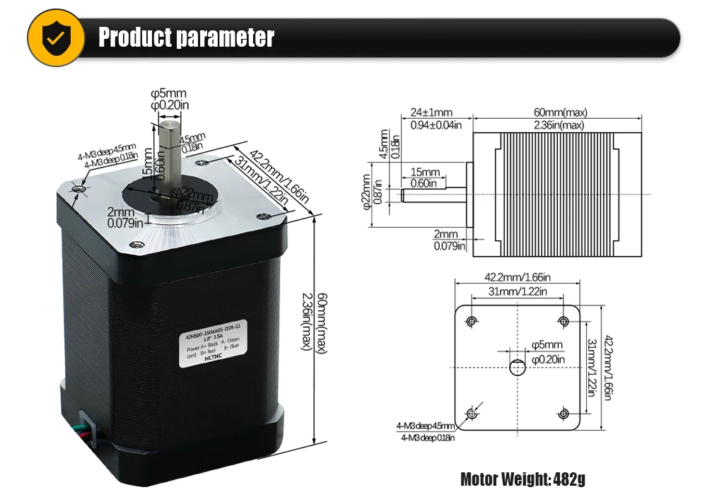 Nema 17 Stepper Motor 0.7N.m 42HS60 for CNC & 3D Printer