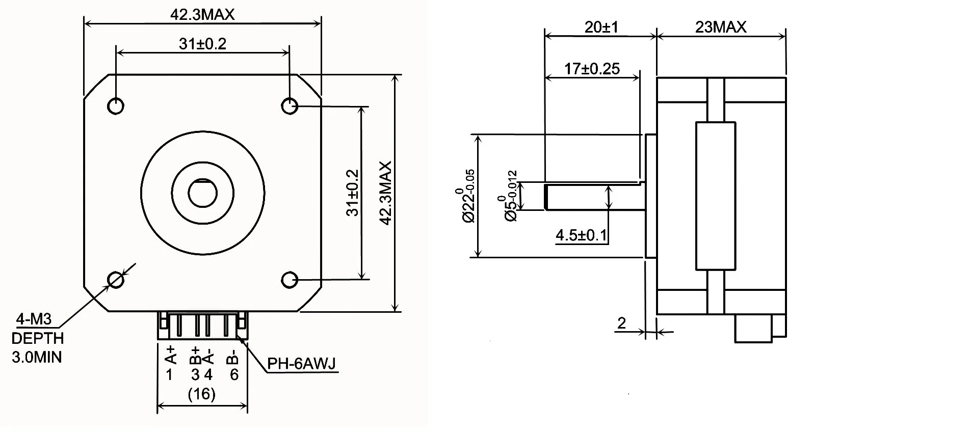 Nema 17 Stepper Motor 17Ncm 2-Phase 42x23mm