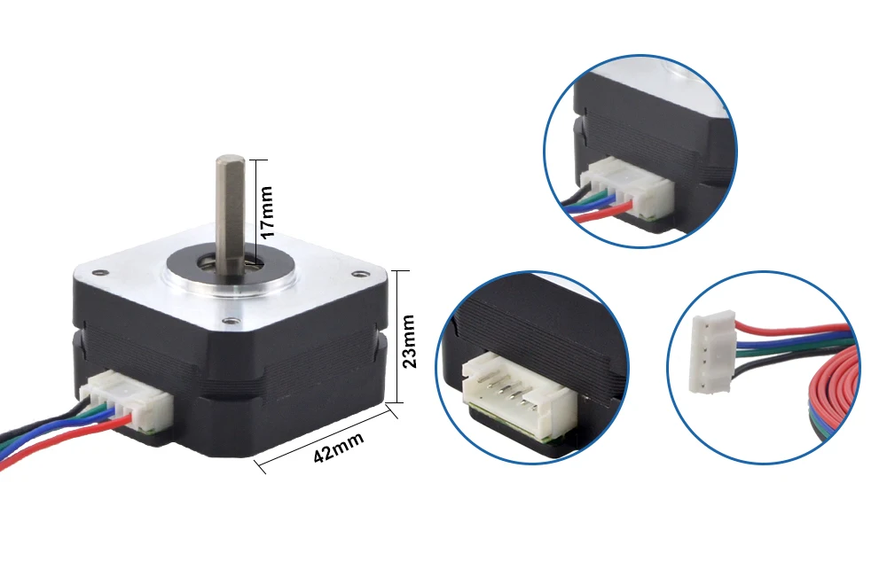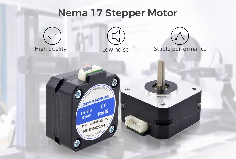 High-performance Nema 17 stepper motor with 17Ncm torque, 42x23mm size, perfect for 3D printers, CNC machines, and embroidery XYZ axis applications.