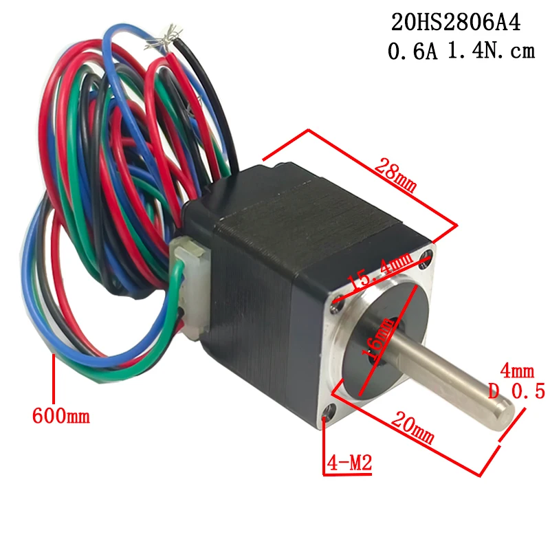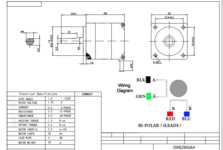 The dimension and wiring of Single shaft Nema8 stepper motor 20HS2806A4 :(unit:mm)
