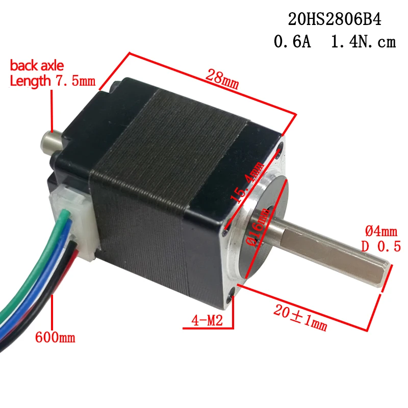 The dimension and wiring of Dual shaft Nema8 stepper motor 20HS2806B4:(unit:mm)