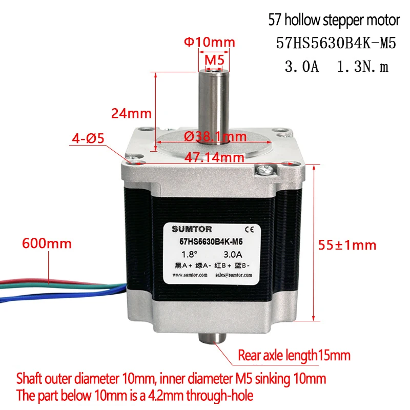 The dimension and wiring of Dual shaft Nema17 stepper motor 57HS5630B4K-M5 :(unit:mm)