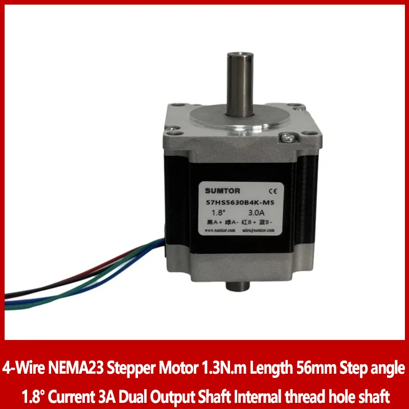 High-performance NEMA23 4-wire stepper motor, 1.3N.m torque, 56mm body, dual shaft, perfect for embroidery machines and CNC applications.