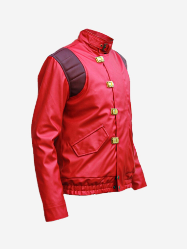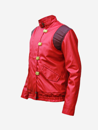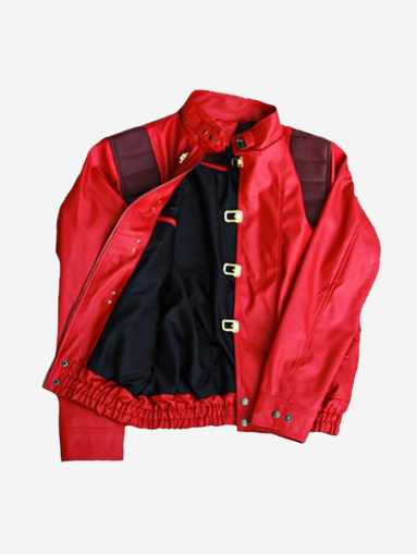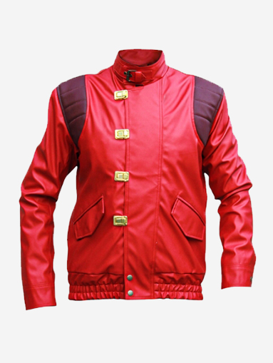 Red Akira Shotaro Kaneda Capsule Logo Pill Biker Bomber Faux Leather Jacket
