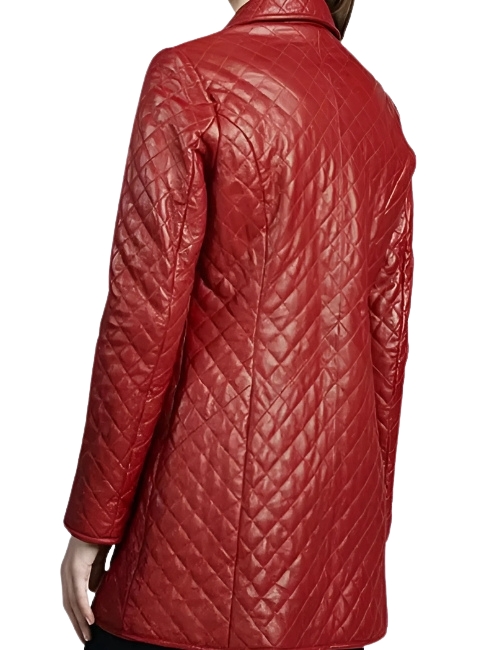 Red Quilted Leather Coat For Women