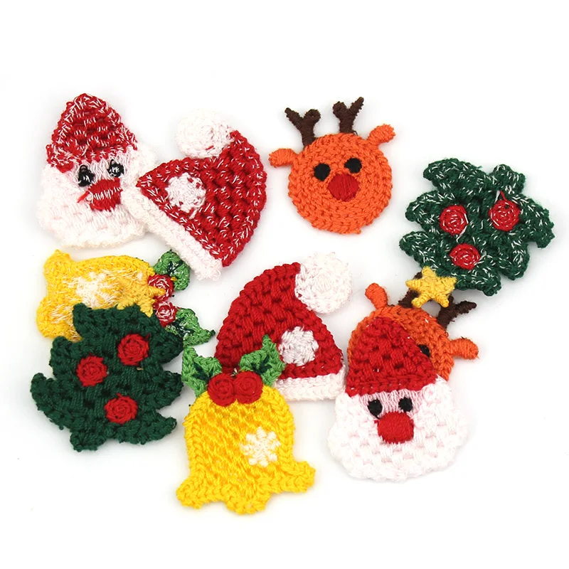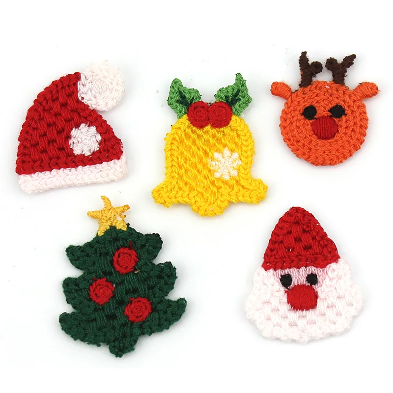 Shop Online for 25 Pieces Woolen Yarn Embroidery Christmas Tree Santa Patches Appliques: Festive Crafts Decoration