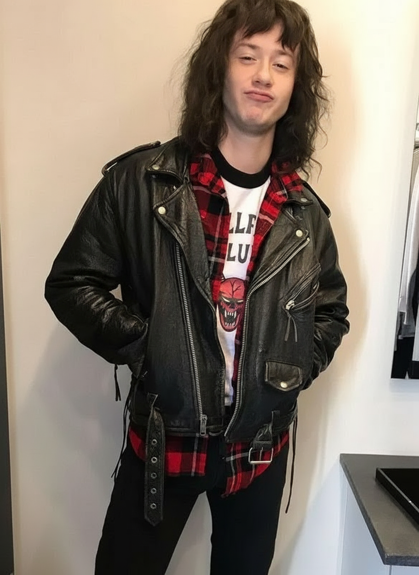 Rock a rebellious look with the Stranger Things Season 4 Eddie Munson Leather Jacket, crafted for bold attitude and durable style