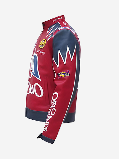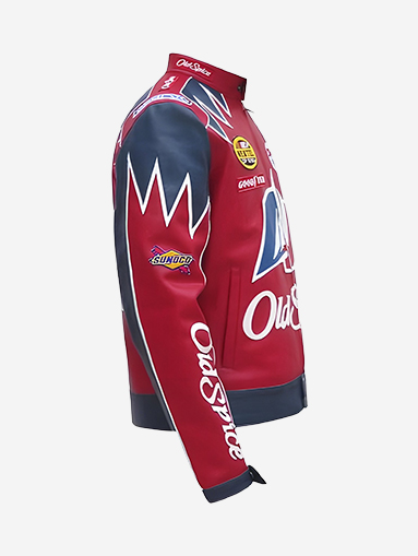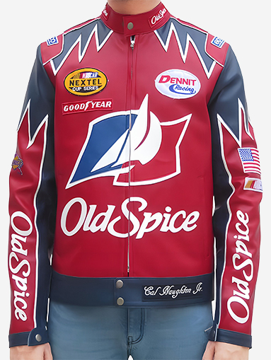 Design Features: Inspired by Ricky Bobby’s “Old Spice” racing style in Talladega Nights bold, cinematic, statement racing jacket look